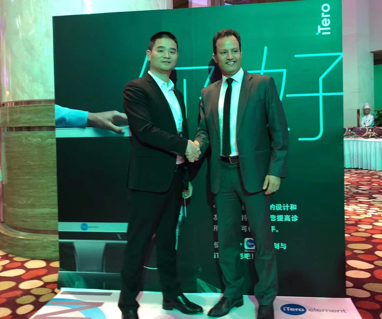 牙大夫口腔隐适美成员与隐适美公司iTero口内扫描仪亚太区总监Moez合影